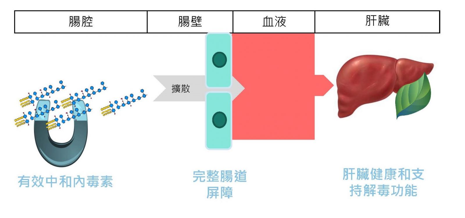 圖一:艾毒淨™針對內毒素的三重作用模式
