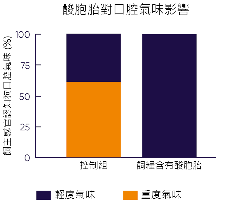 在犬隻飲食中添加酸胞胎®可降低狗的口氣和糞便氣味。