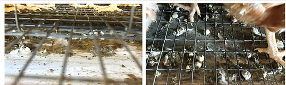 圖一:艾優植™顯著提升蛋雞的糞便性狀 (左:使用前;右:使用期間)